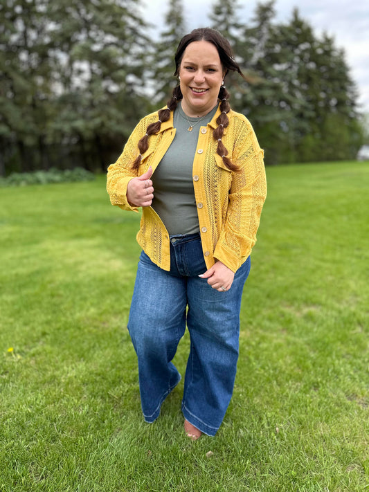 Sweeter Than Nectar Lace Button Down in Honey
