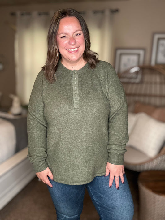 Urban Flux Scooped Hi-Low Long Pullover in Olive