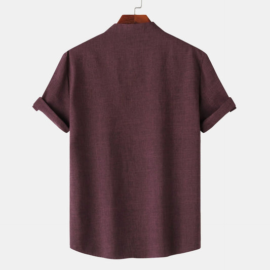 Breeze Way Menâs Linen Blend Mandarin Collar Henley