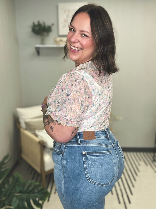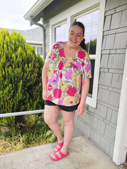 Diamonds and Pearls Puff Sleeve Top in Light Grey
