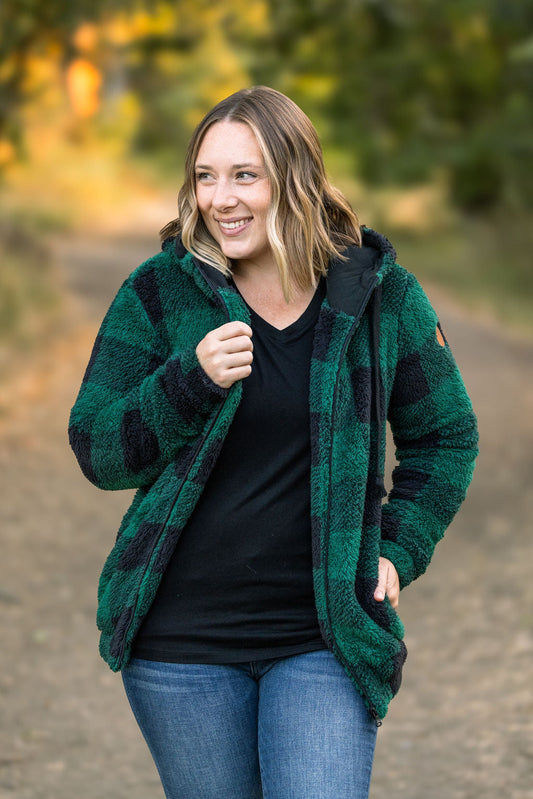 Michelle Mae Sherpa Fullzip Hoodie - Green Plaid