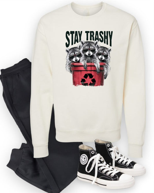 Stay Trashy Racoon Graphic Sweatshirt (PLUS)