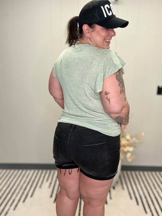 Sunset Stroll Distressed Hem Shorts in Washed Black