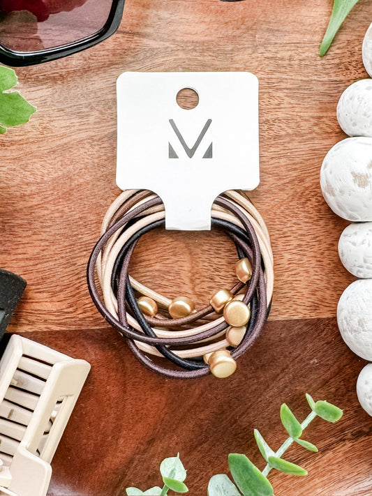 Michelle Mae Hair Tie Bracelet Sets - Neutral Gold Accents