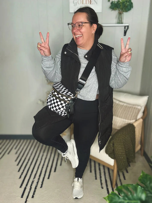 Frankie Oversize Double Zip Checkered Crossbody Bag