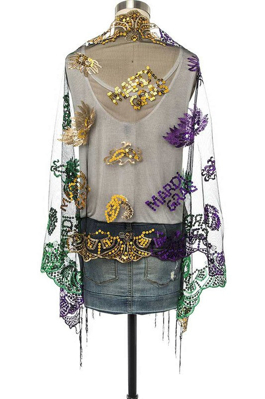 Mardi Gras Fleur De Lis Sequin Shawl Scarf
