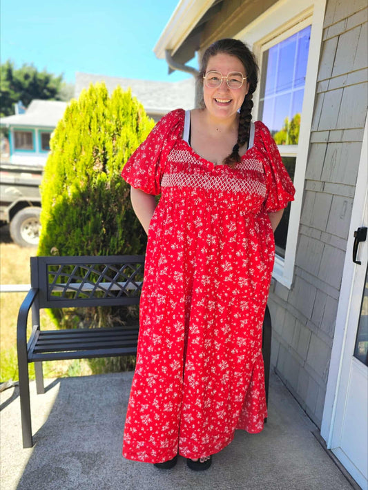Michelle Mae Reagan Ribbed Midi Dress - Sand and Rust Floral