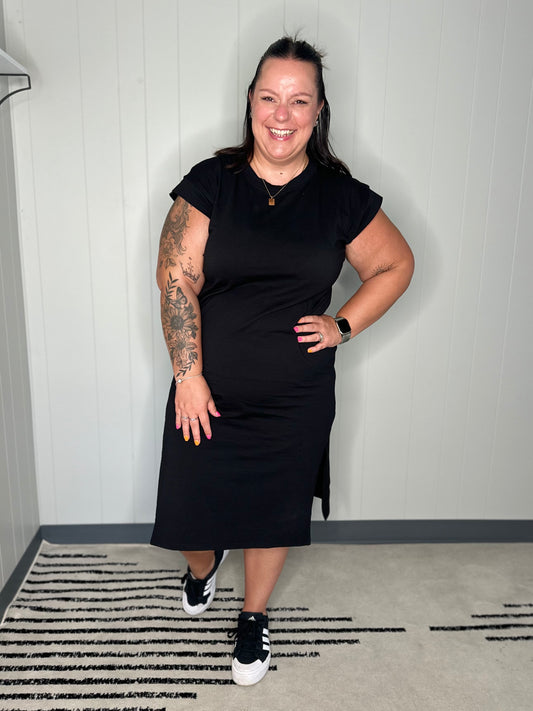 Michelle Mae Reagan Ribbed Midi Dress - Black Floral