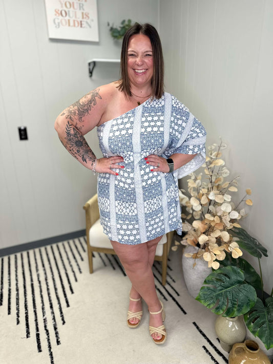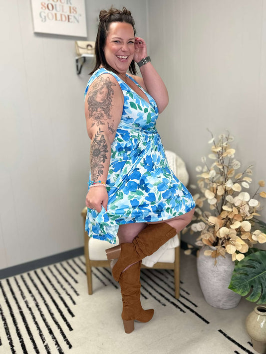 The Sun's Been Quite Kind V-Neck Dress in Blue