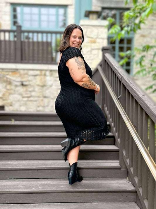Bow Peep Eyelet Knit Dress in Pink and Green