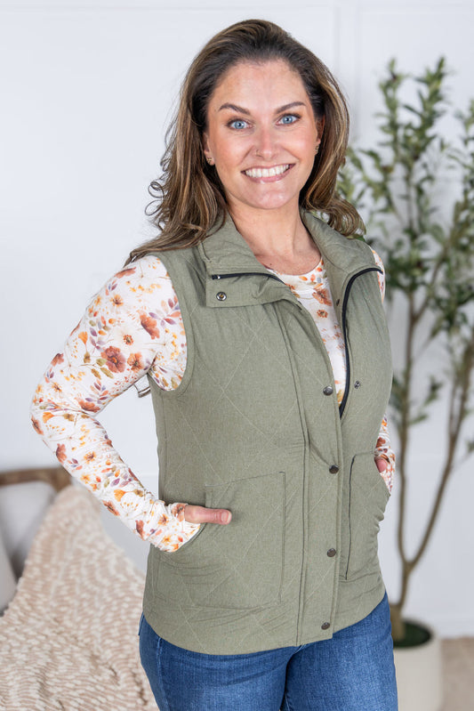 Michelle Mae Remy Zip Up Vest - Heathered Sage