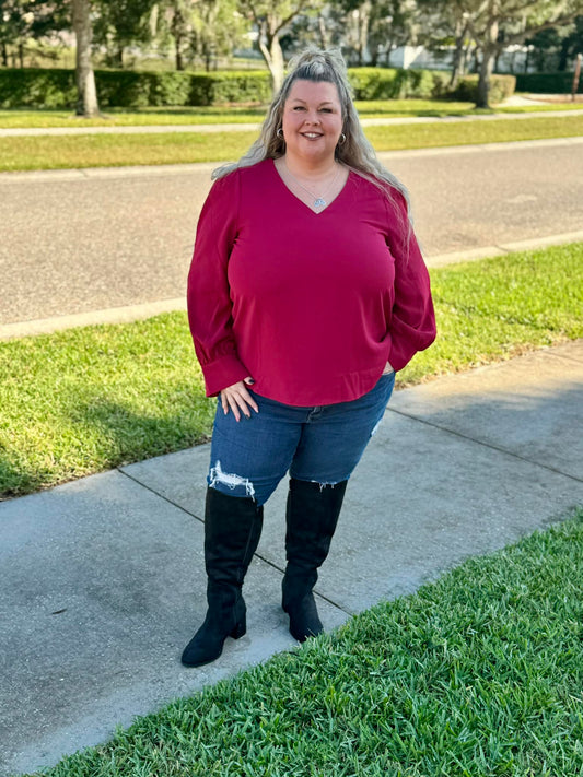 Michelle Mae Leah Long Sleeve Top - Red
