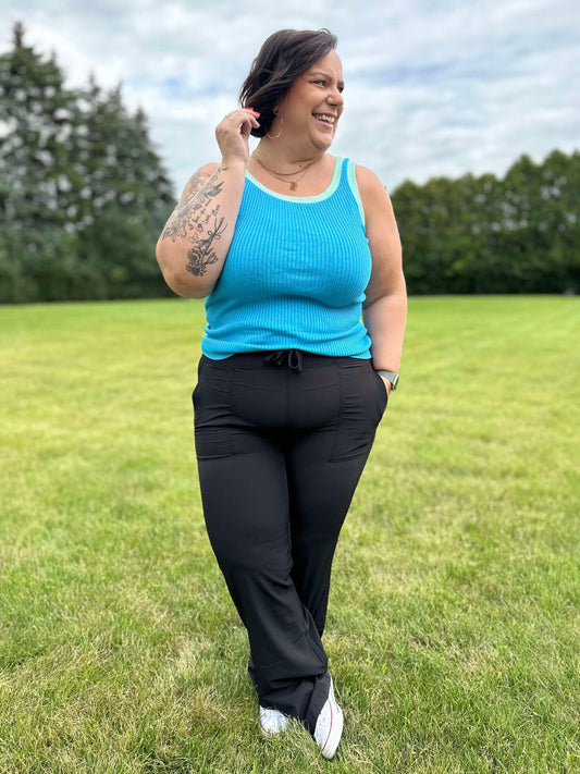 Gym and Juice Ribbed Knit Square Neck Tank in Navy