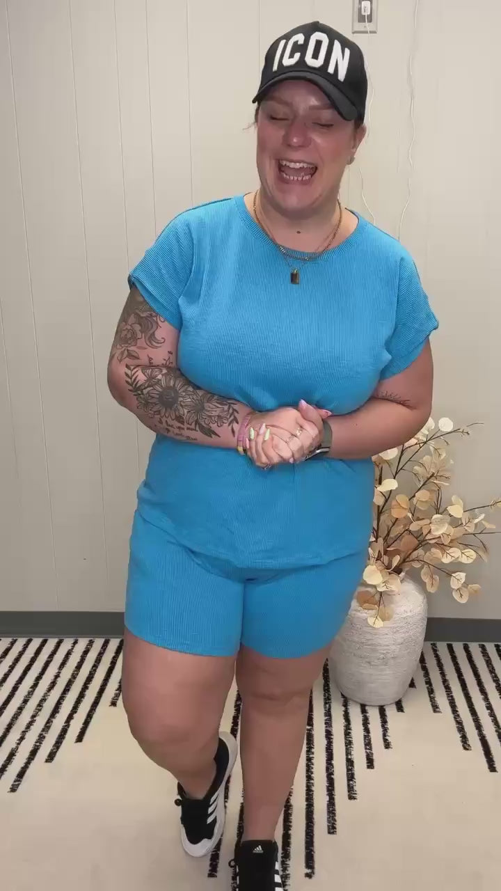 Cozy meets chic in our Back to My Favorite Place Shorts and Tee Set! Made from soft ribbed knit fabric, this set features a banded round neckline, dolman sleeves with tacked cuffs, and a high-stretch design that’s perfect for ultimate comfort. Stay comfy and organized with functional side pockets and a cased elastic waistband. Whether you're lounging or running errands, this set will keep you looking stylish while feeling cozy!
