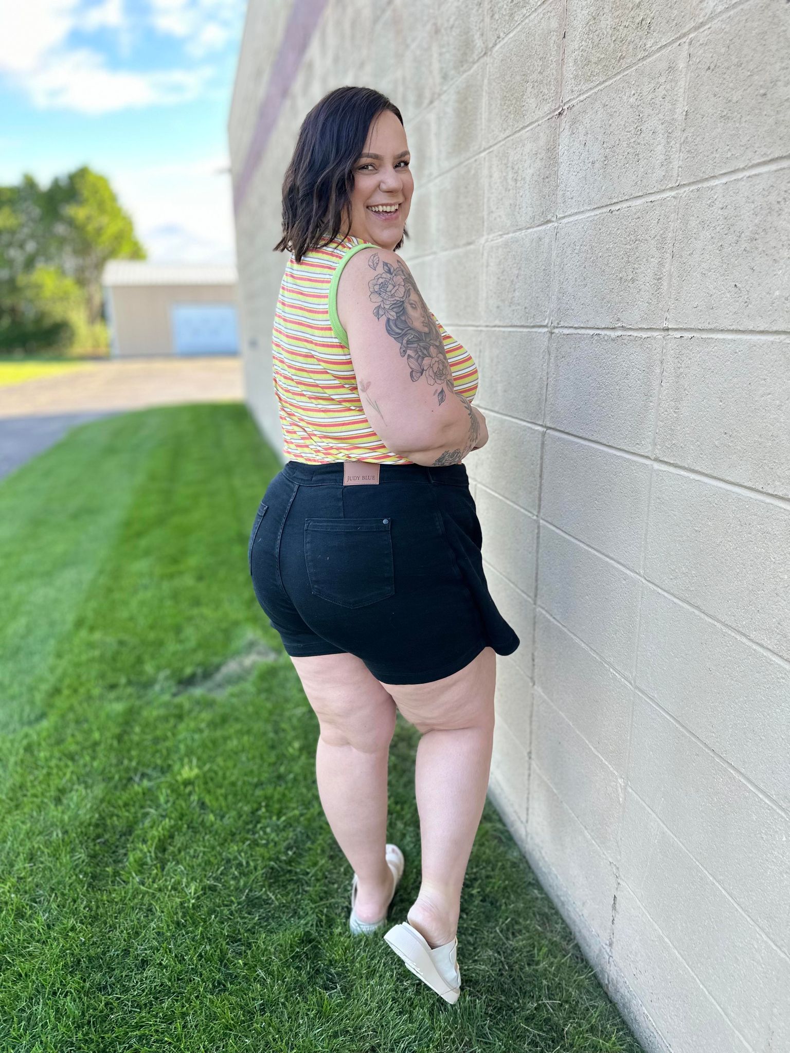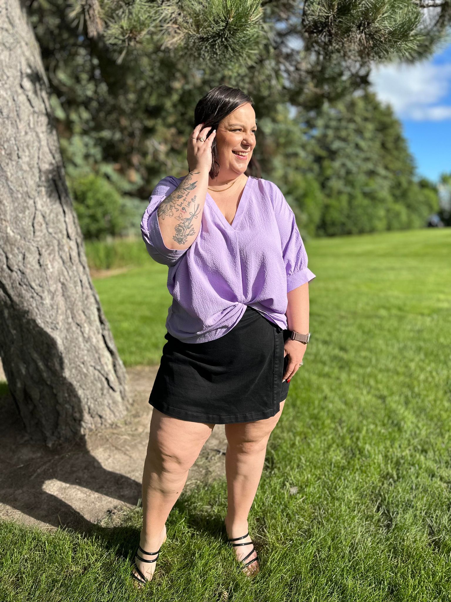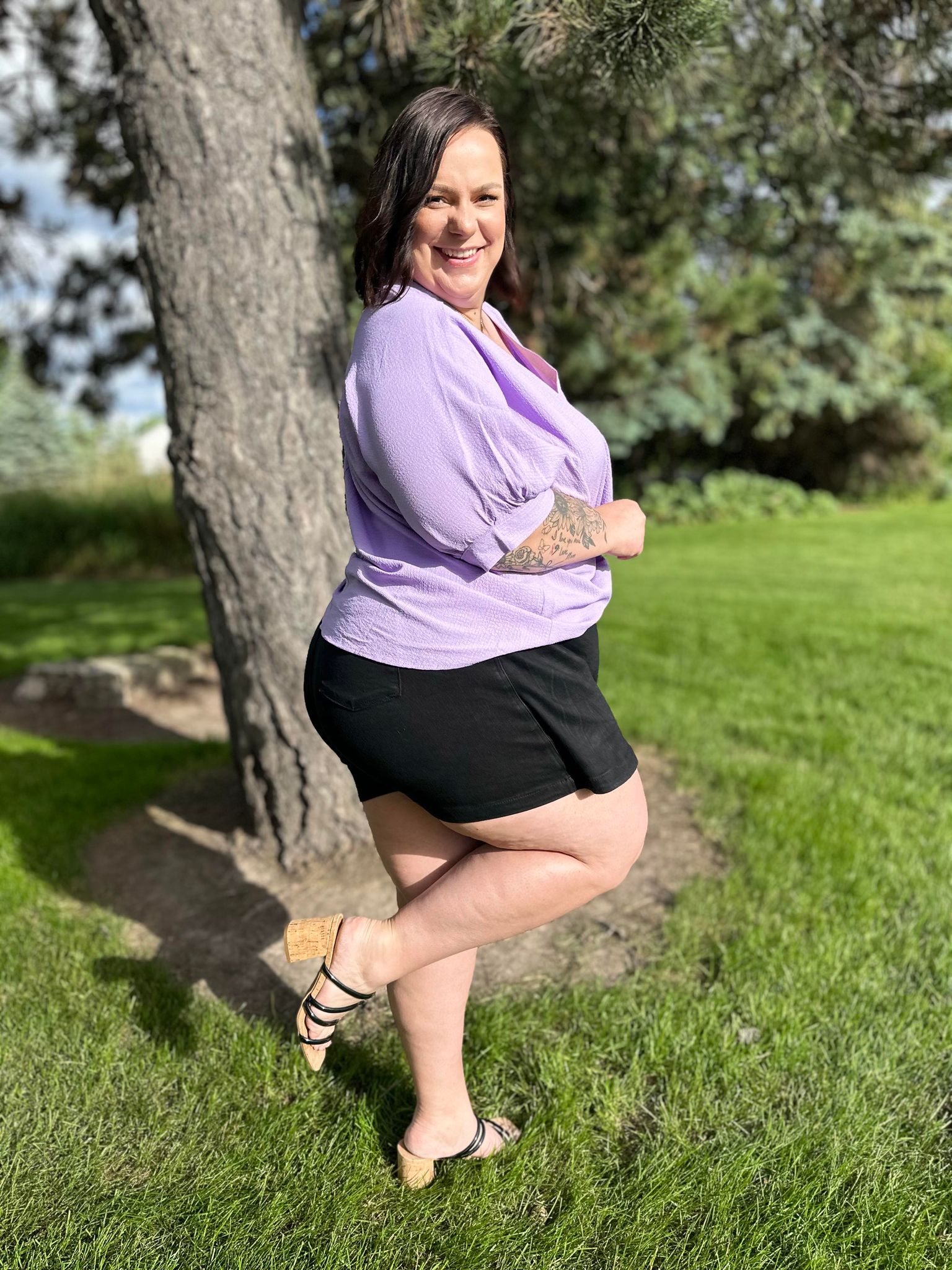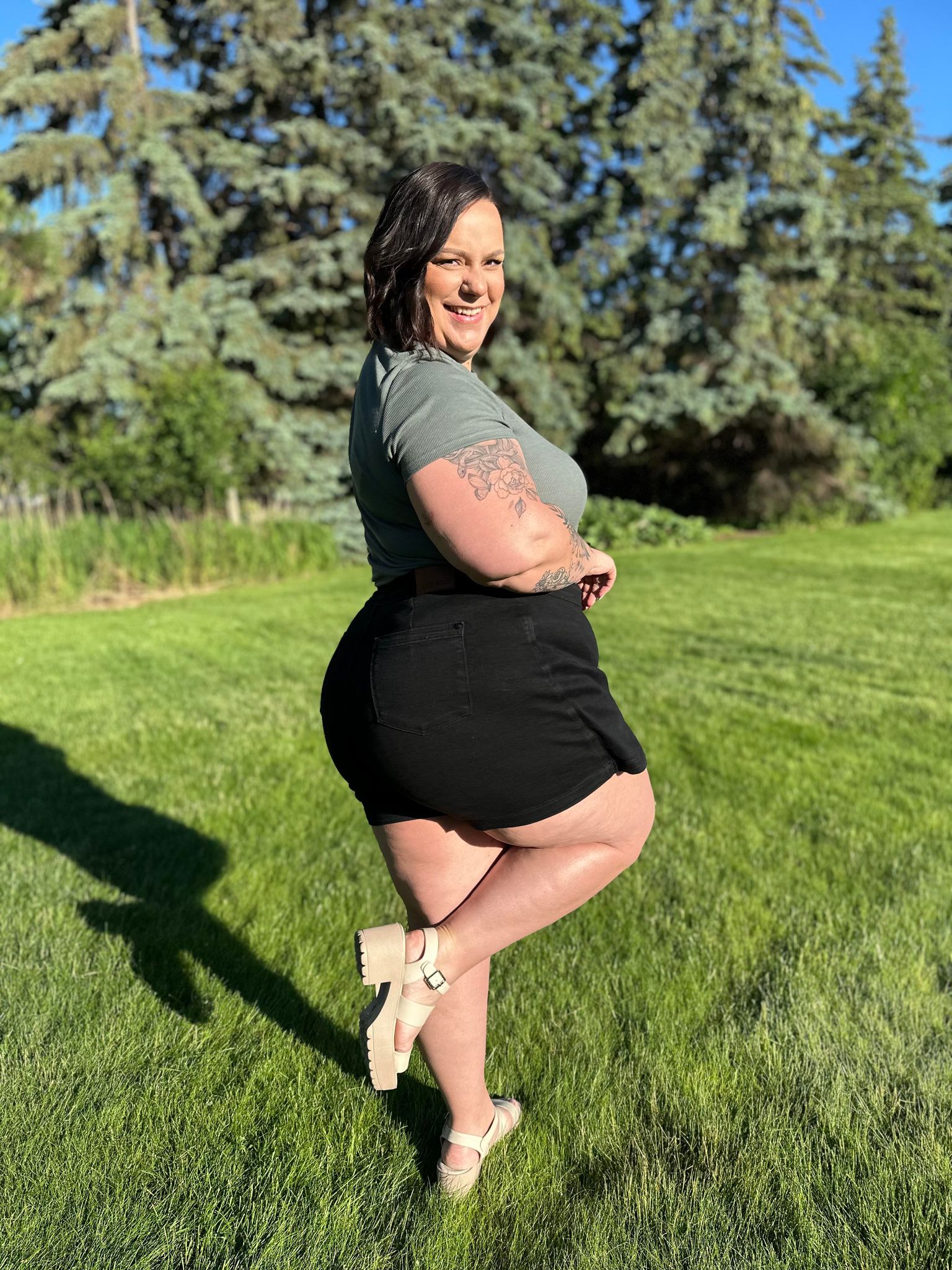 Randi is 270lbs, 5/7, 42F. Typically a 1xl/2xl on top and a 16/18 on bottom. Wearing a 2xl. She says, "Aahmmmmazing stretch! Judy Blue knocked this out of the park. This is such a comfortable piece that you can pair with ANY top!"