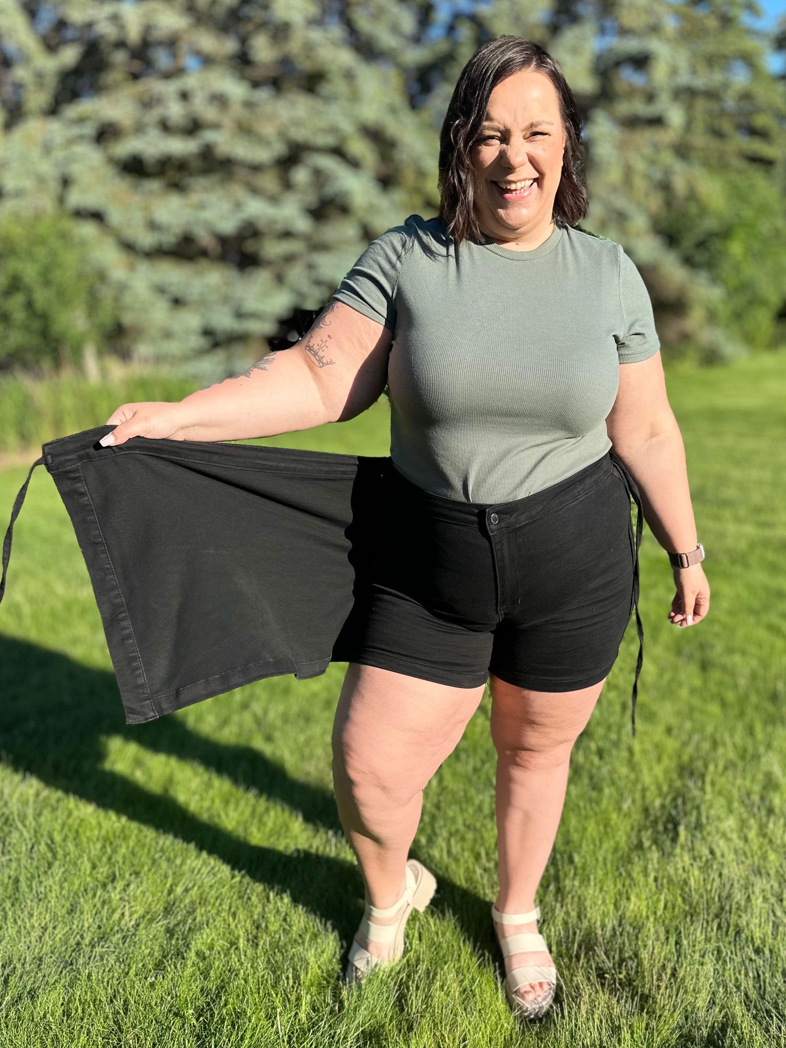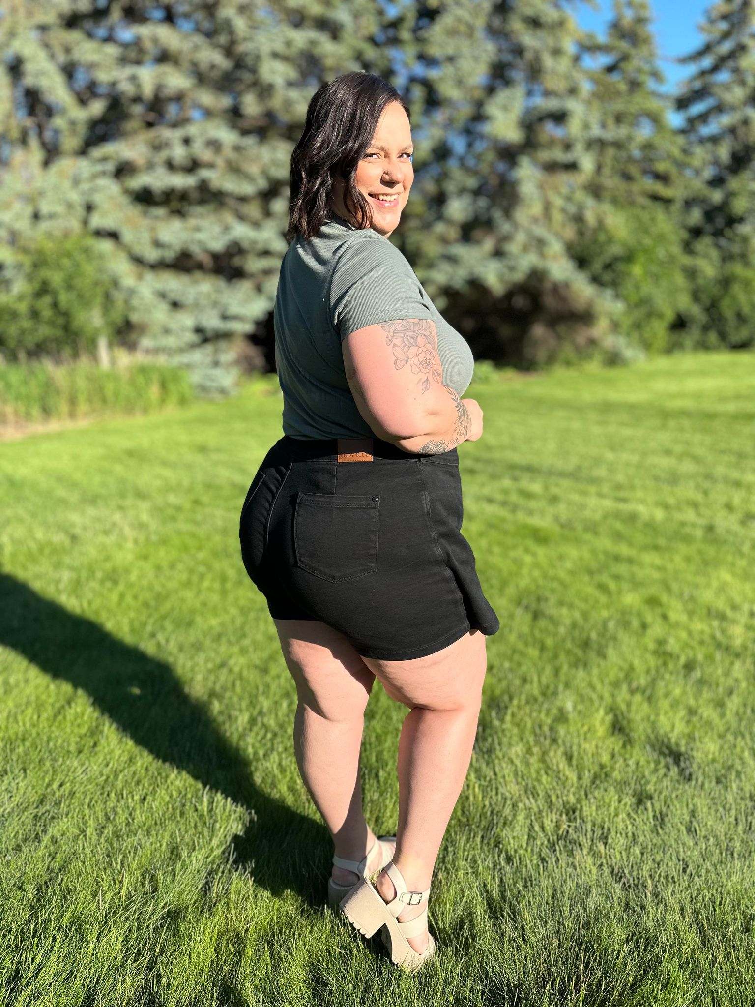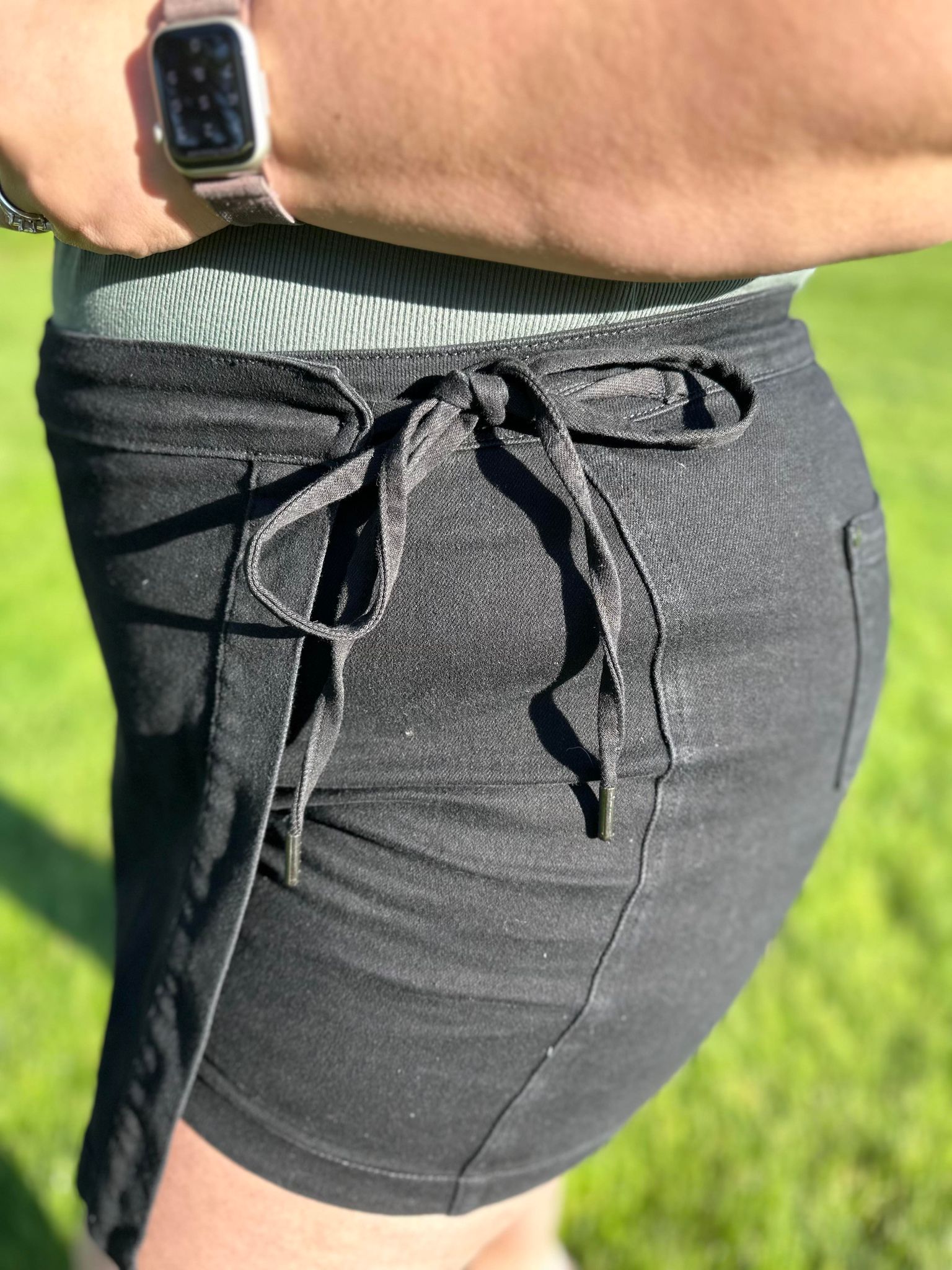 Experience elevated style with our Bentli High Rise Side Tie Denim Skort in Black. Embrace the trending skort look with this sleek and sophisticated non-distressed piece in rich black. The high rise and side tie closure create a flattering fit, making it a must-have addition to any wardrobe.