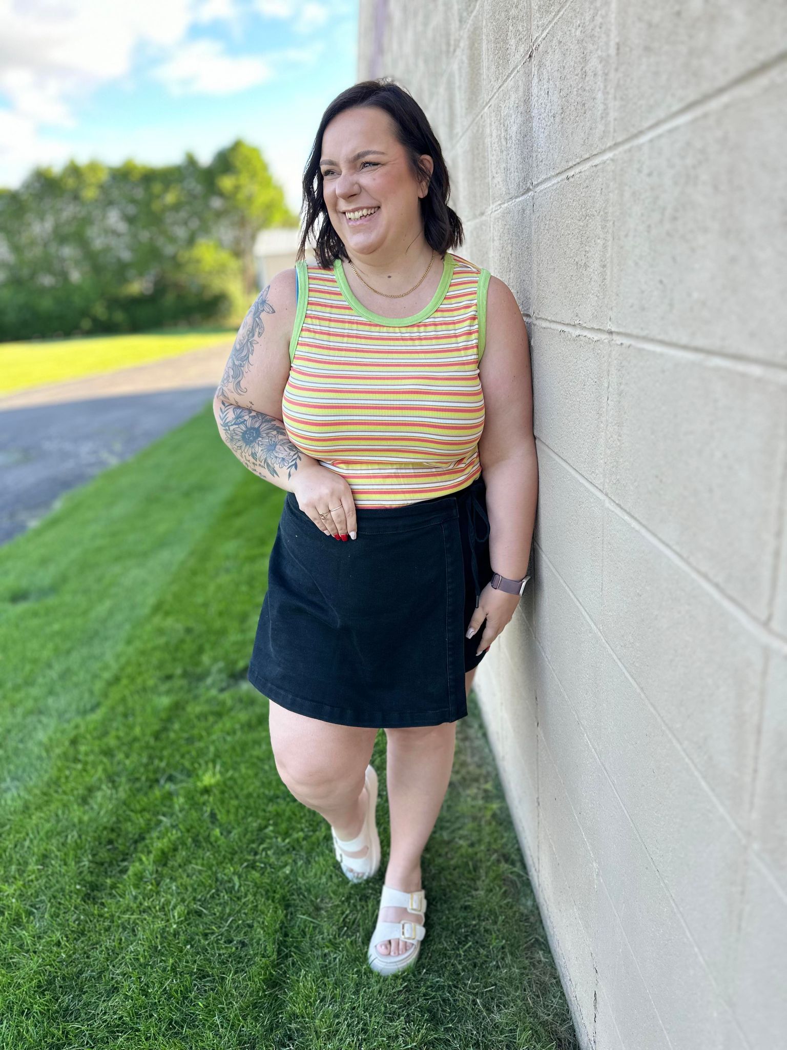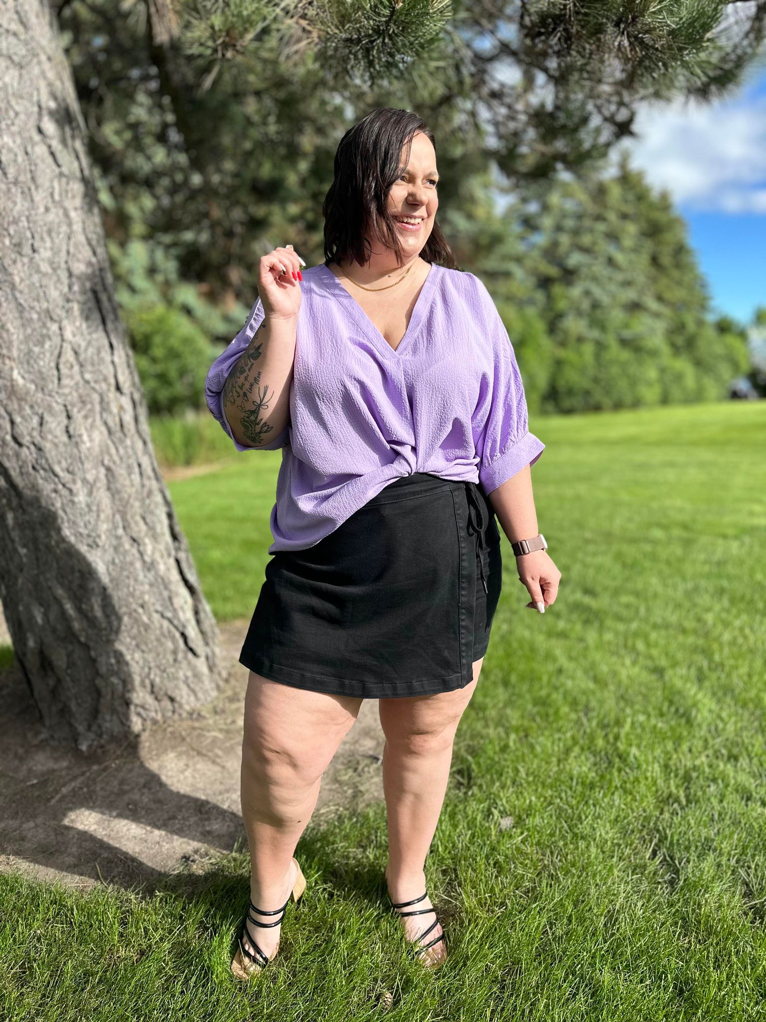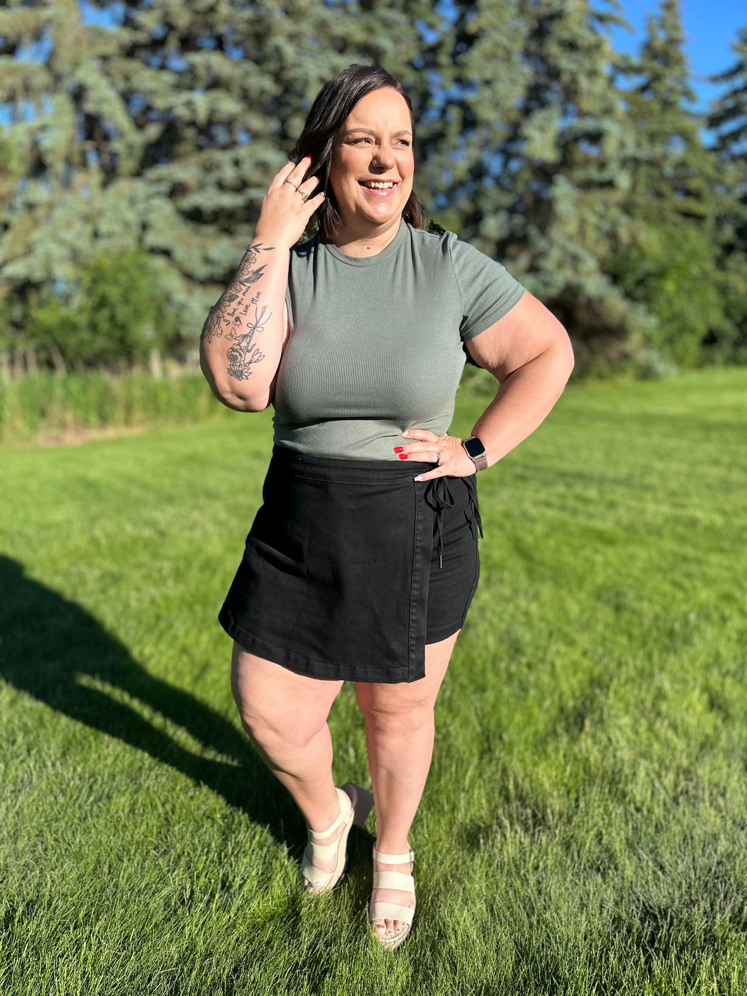 Experience elevated style with our Bentli High Rise Side Tie Denim Skort in Black. Embrace the trending skort look with this sleek and sophisticated non-distressed piece in rich black. The high rise and side tie closure create a flattering fit, making it a must-have addition to any wardrobe.