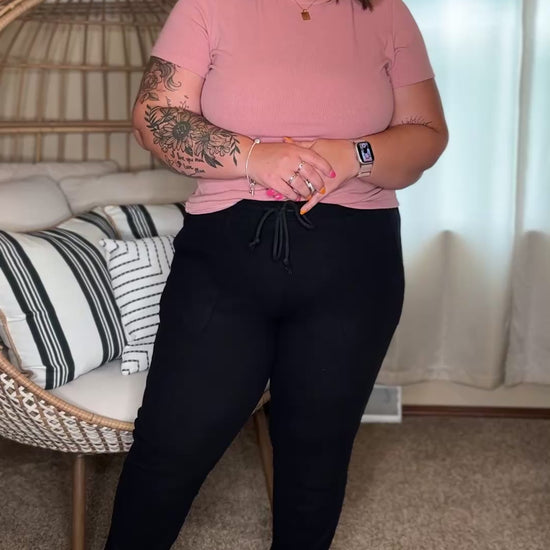 Introducing the amazing Corrine Joggers in black! These joggers feature a ribbed design, convenient pockets, and drawstrings for a customizable fit. The stretchy waistband and cuff bottoms provide ultimate comfort and style. Get ready to run, jump, and lounge in these versatile joggers. These pair perfectly with our matching Corrine pullovers too!