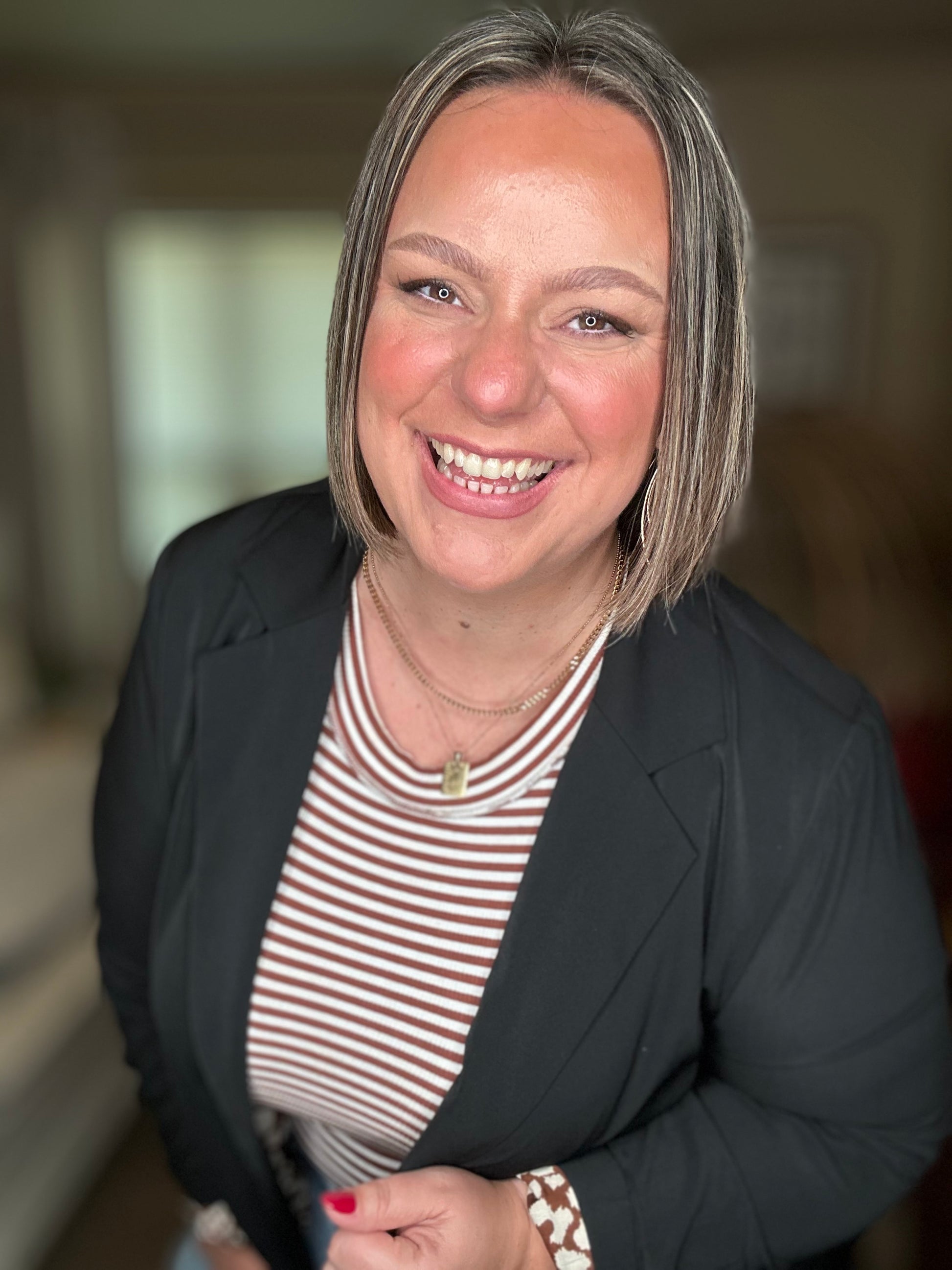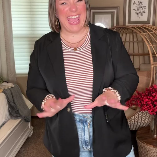 Randi is 5’7, 255lbs, 42F chest Typically a one X on the top and a 14 W on the bottom, wearing her true size of a 1xl. She says, “I literally am obsessed with this blazer. It’s one of the items that I’ve kept in my closet for a very long time and I have no plans on giving it up. It fits fantastically it’s elegant. It’s powerful and it goes with every outfit. You could possibly try to pair it with. 10/10”