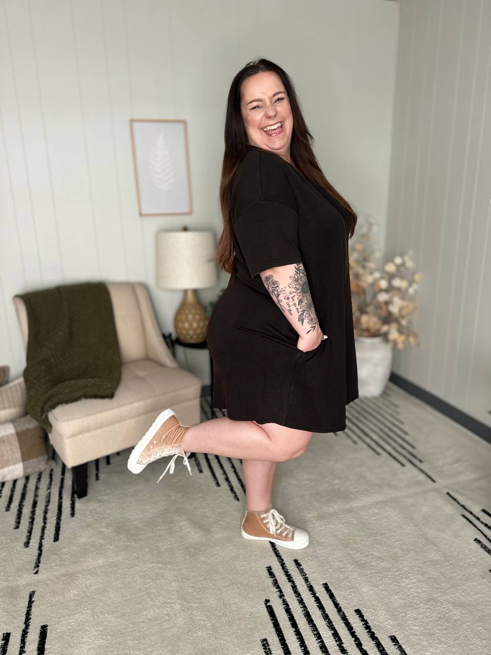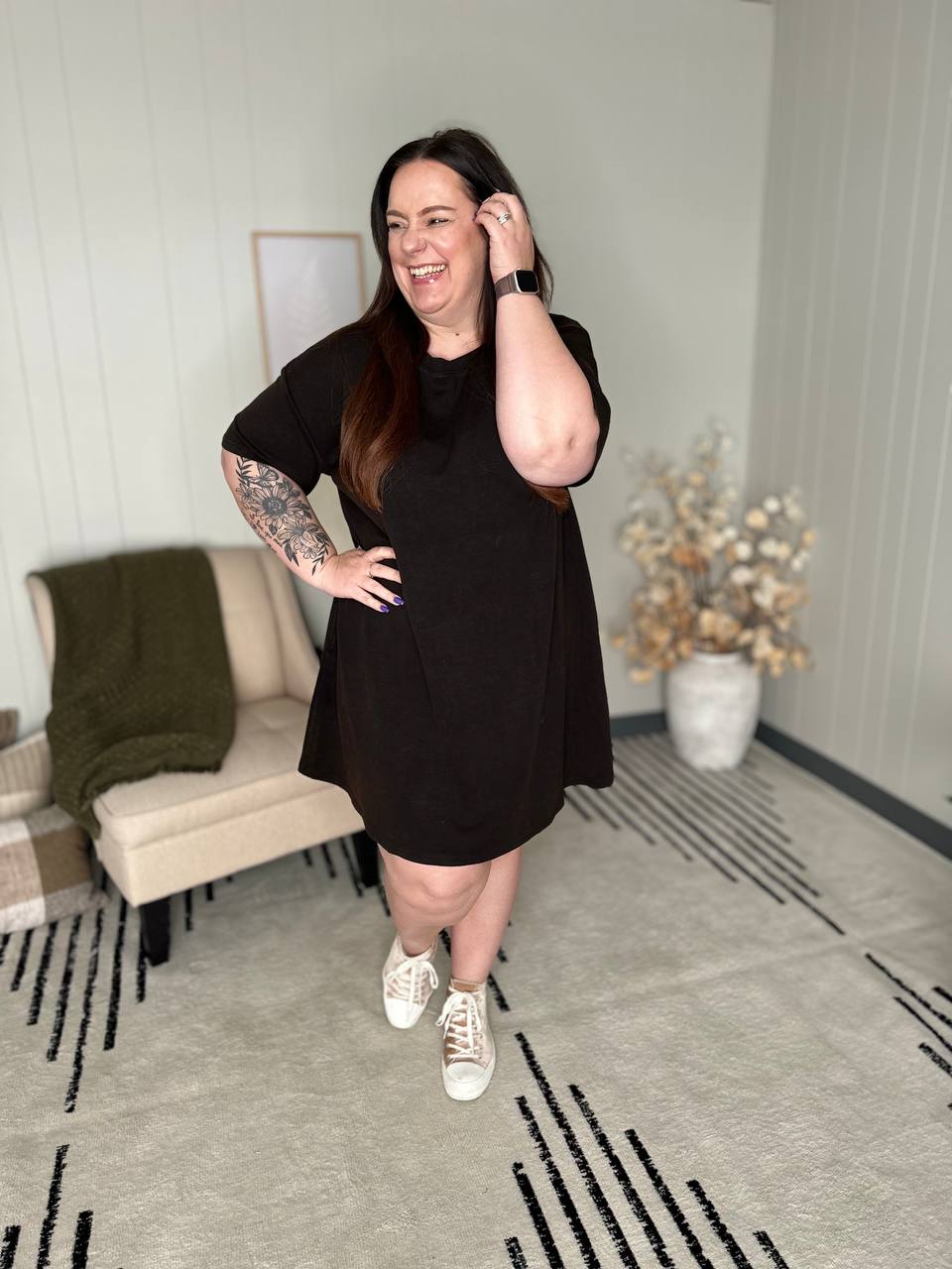 Step out in style with our Farewell Mineral Wash Dress! The brushed microfiber fabric provides ultimate softness, while the round neckline and drop shoulder add a trendy touch. And don't forget the functional side pockets for your convenience. Farewell to boring dresses - this one has it all! (But don't take our word for it, try it yourself!)