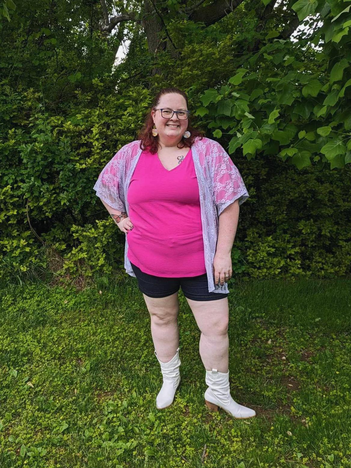 Katie is 280lbs, 5'6, 45DD and wears a 1xl/2xl on top and an 18-22 on bottoms. Wearing