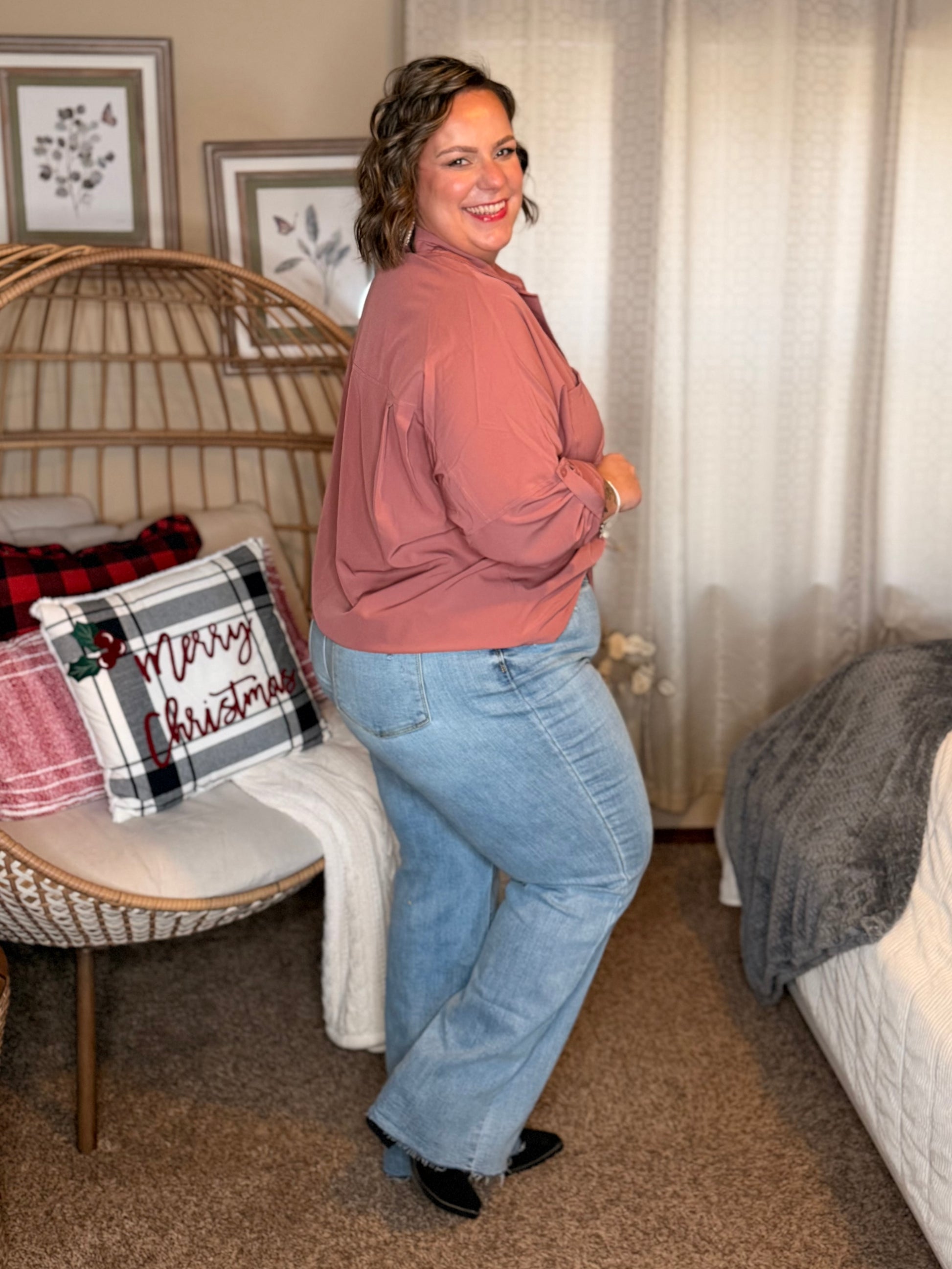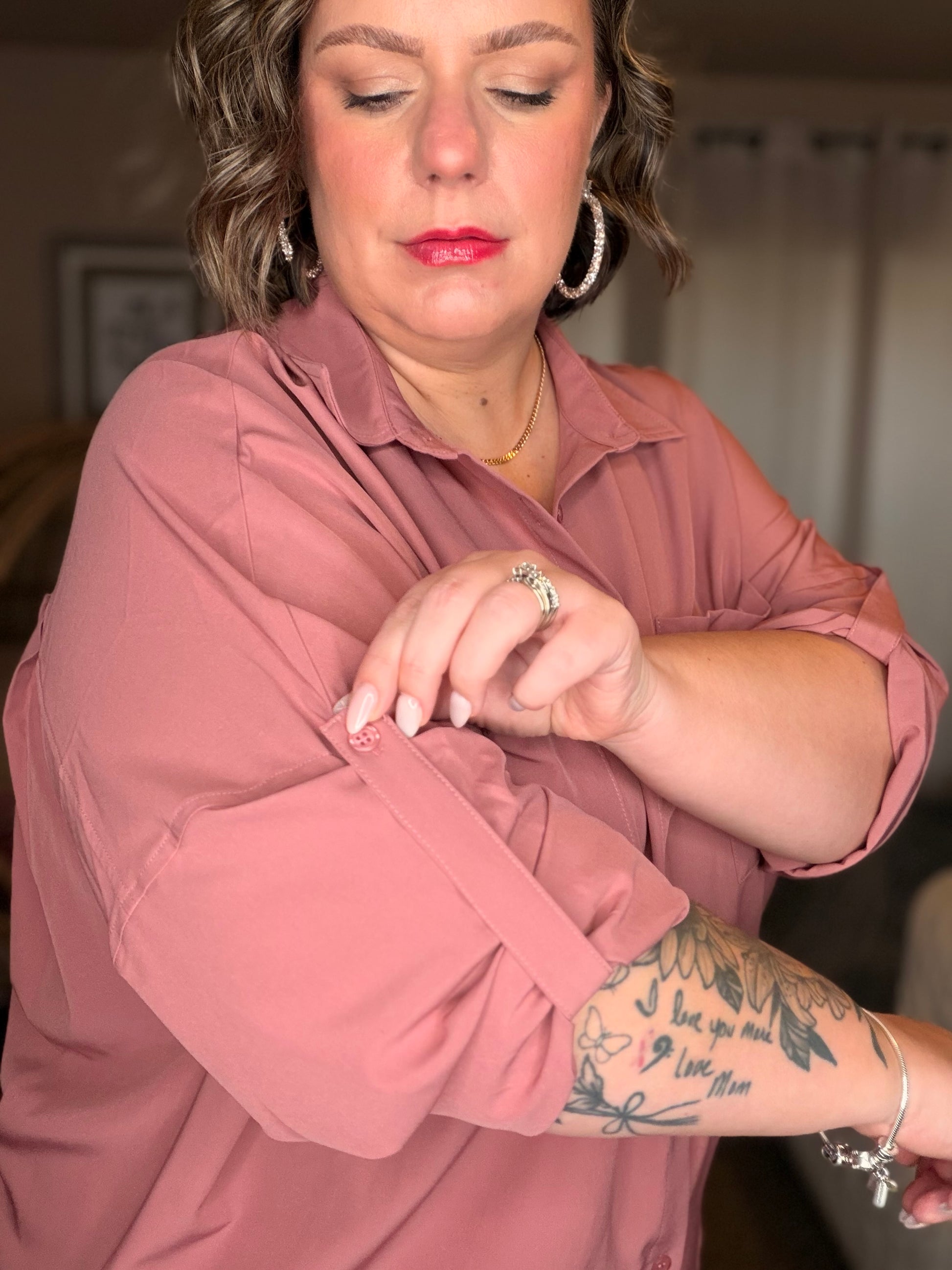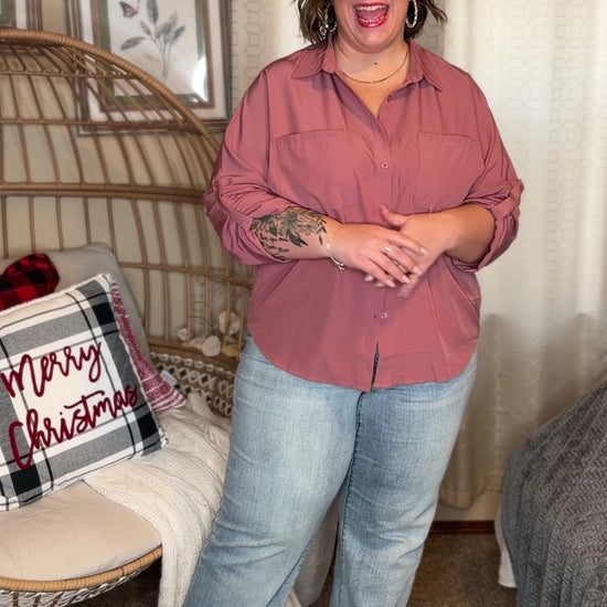 Elevate your wardrobe with the Keep it Profesh Button Up Top. Featuring a collared neckline, drop shoulder, and optional buttoned rolled sleeve tab, this classy top is perfect for any "girl boss". The flowy and breathable fabric adds a touch of comfort to your professional appearance.