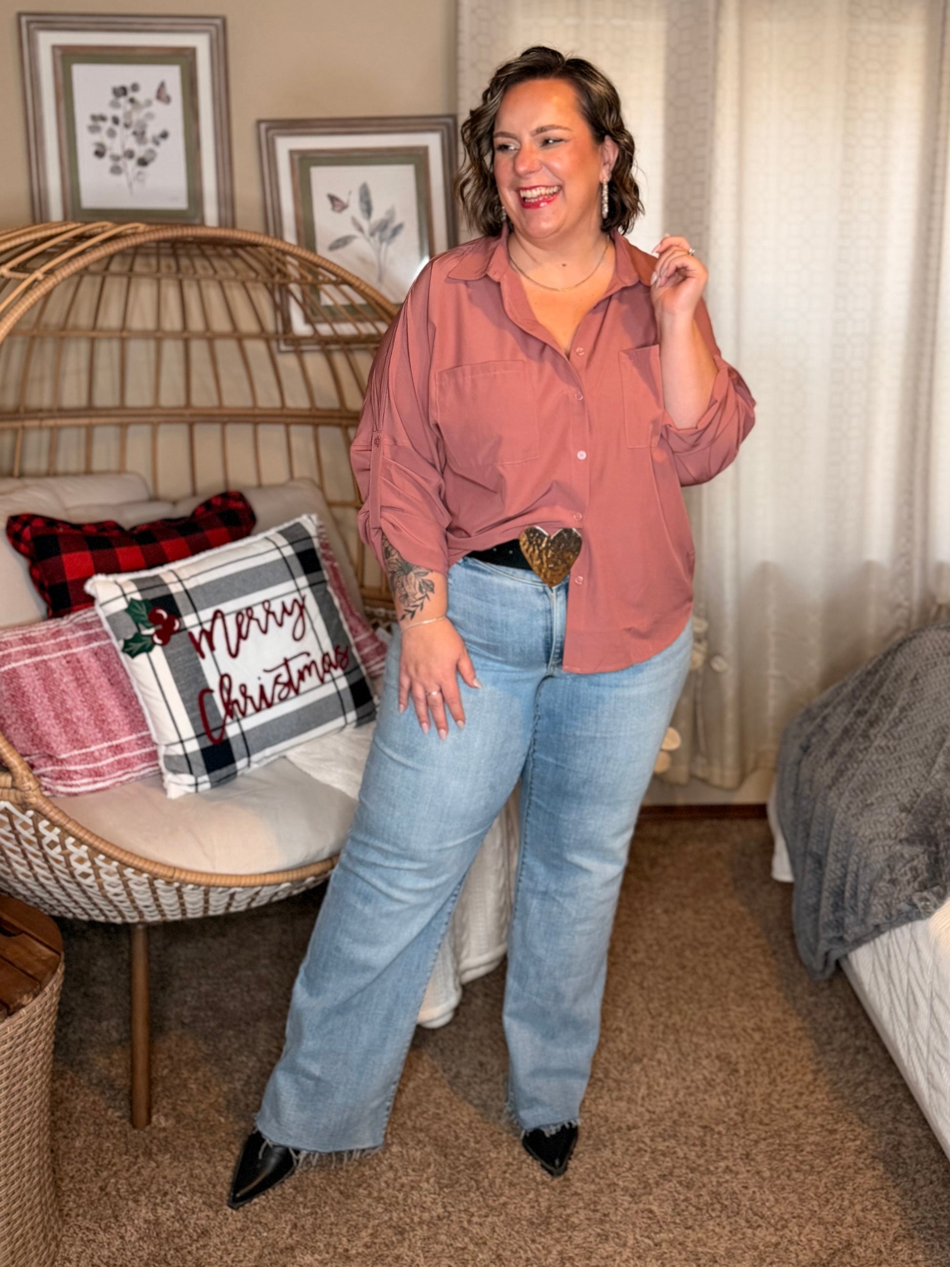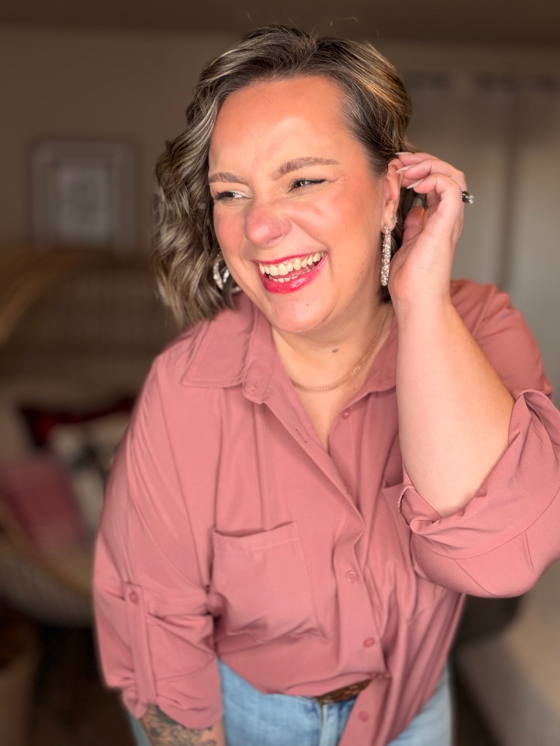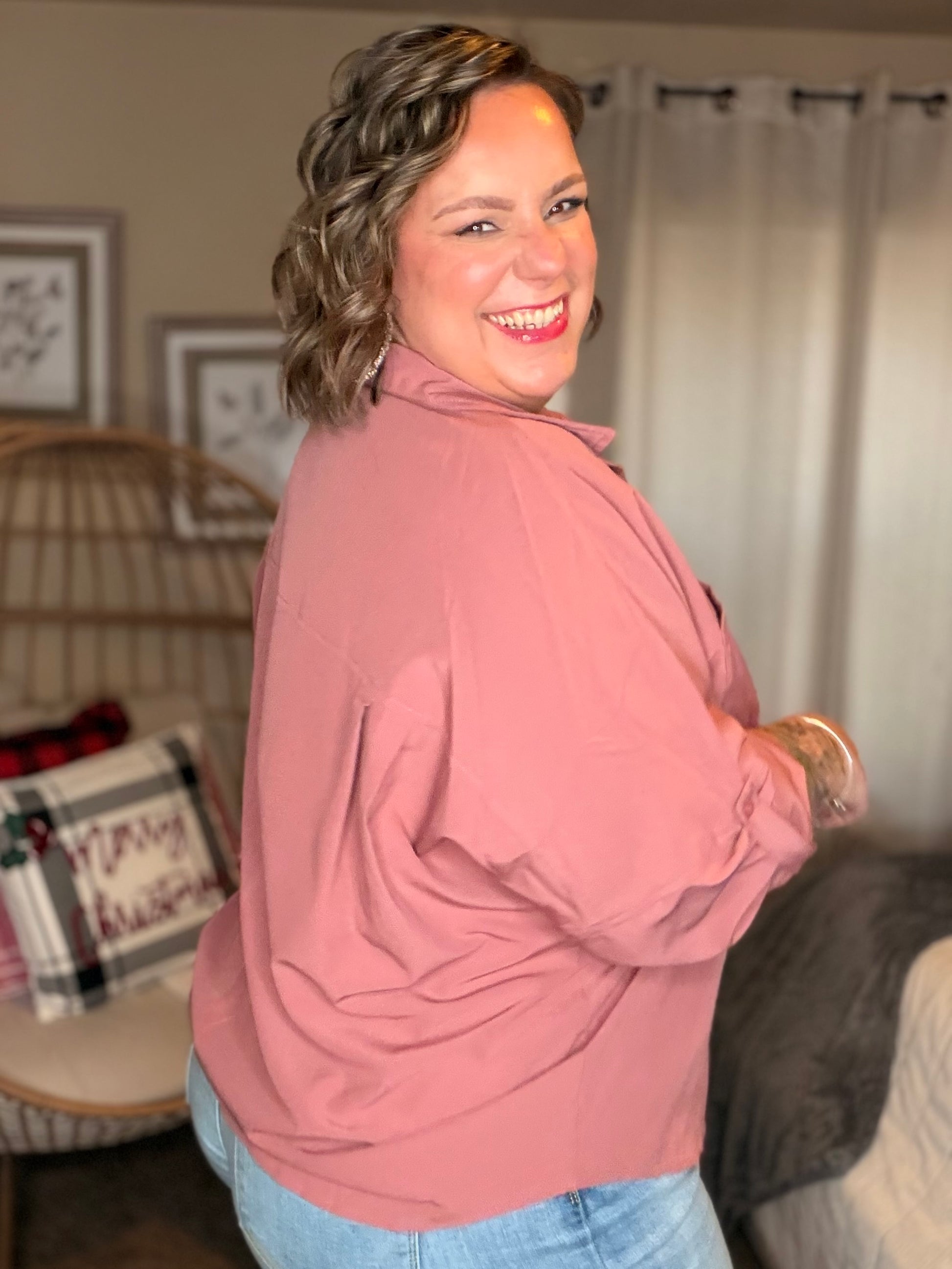 Elevate your wardrobe with the Keep it Profesh Button Up Top. Featuring a collared neckline, drop shoulder, and optional buttoned rolled sleeve tab, this classy top is perfect for any "girl boss". The flowy and breathable fabric adds a touch of comfort to your professional appearance.