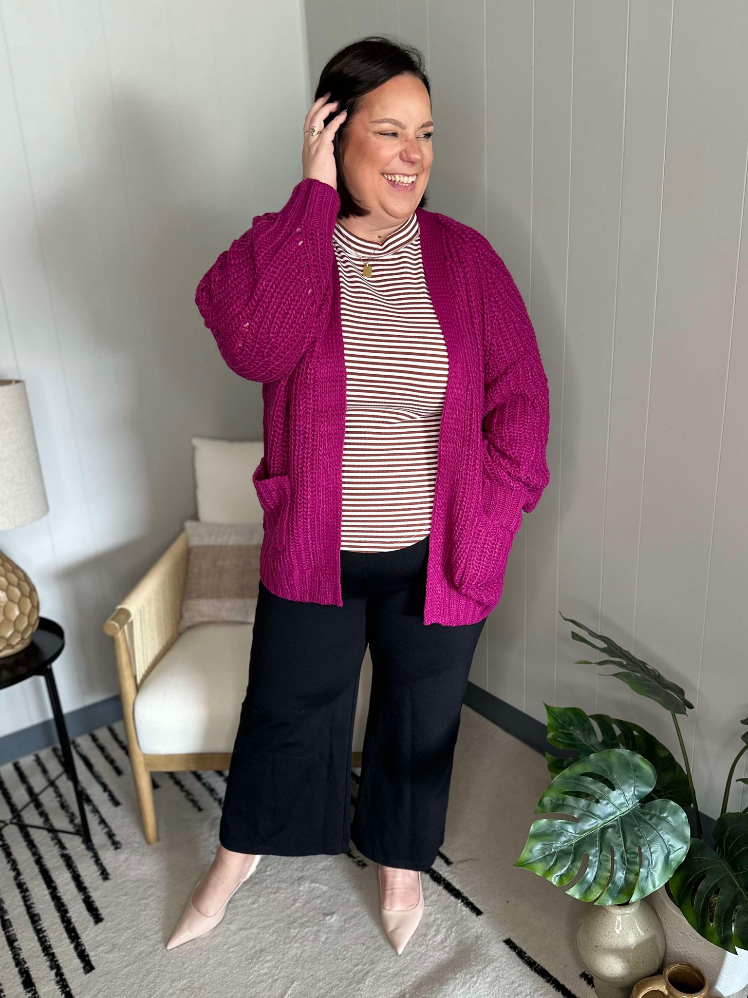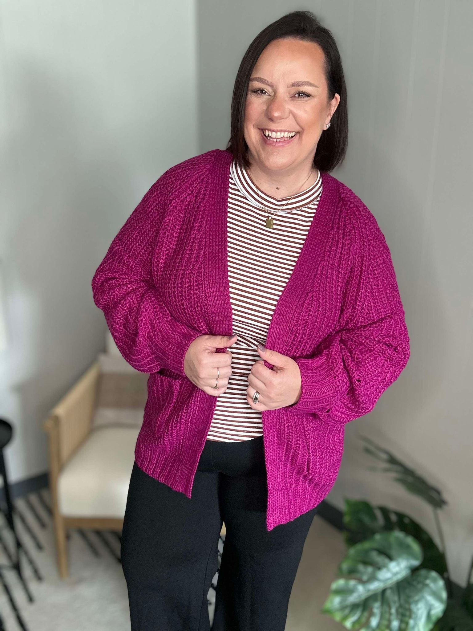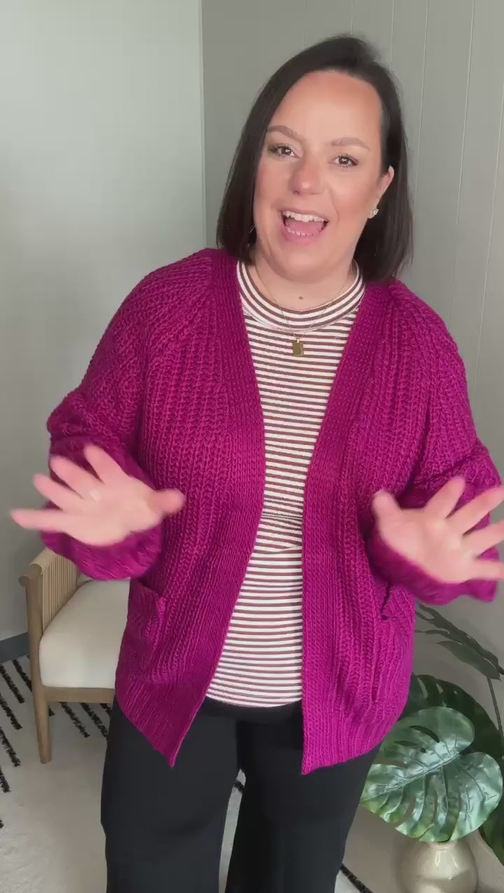 Stay cozy in our Maybe Monday Cardigan! This super soft sweater knit cardigan features an open front, pockets, a slouchy fit, and balloon sleeves—perfect for bringing comfort and style to any outfit.