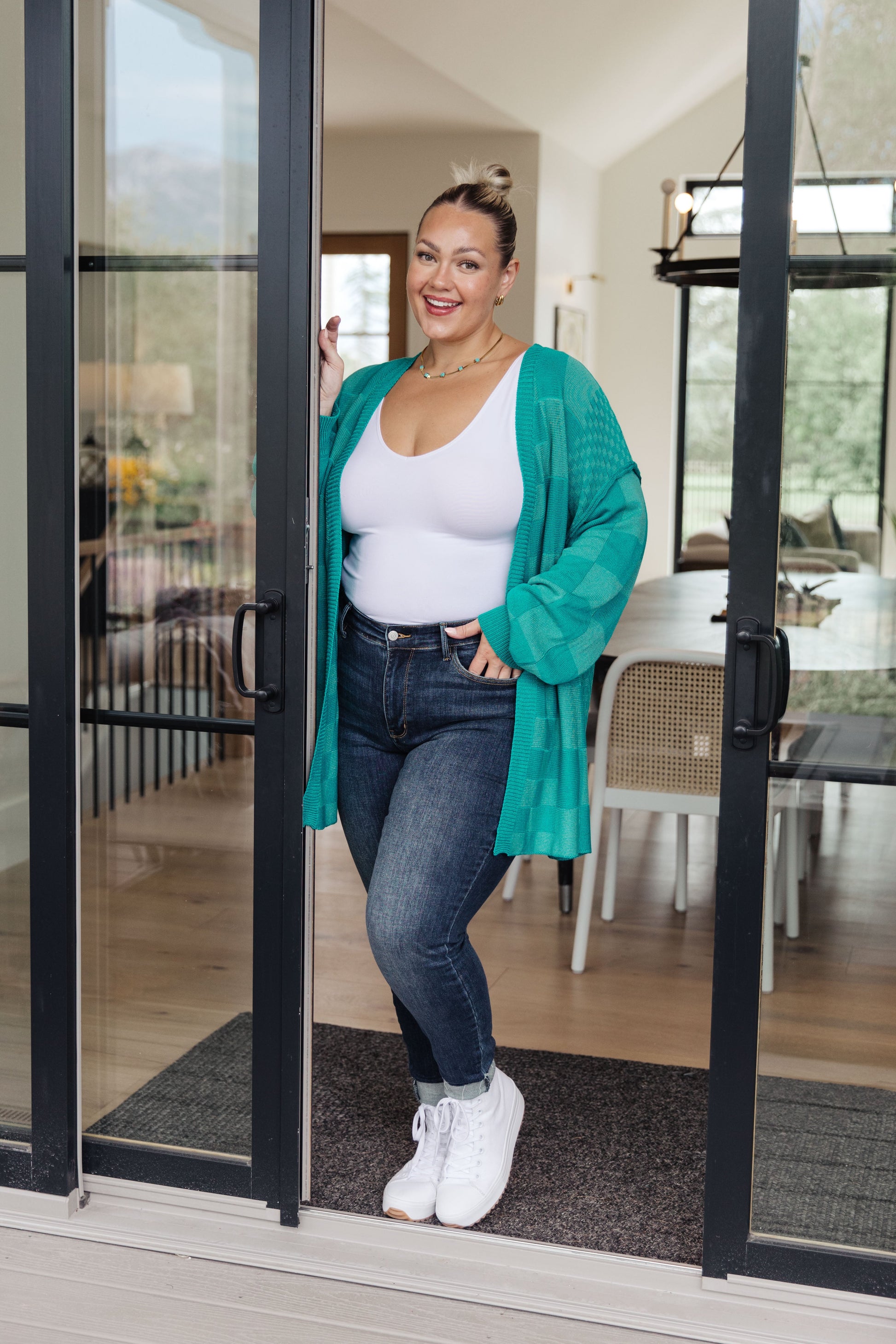 Introducing the Pinky Swear Checkered Open Front Cardigan! Be daring and flaunt your style with this unique monochrome checkered pattern and a relaxed fit. This piece is sure to be the perfect fun layer you've been looking for!