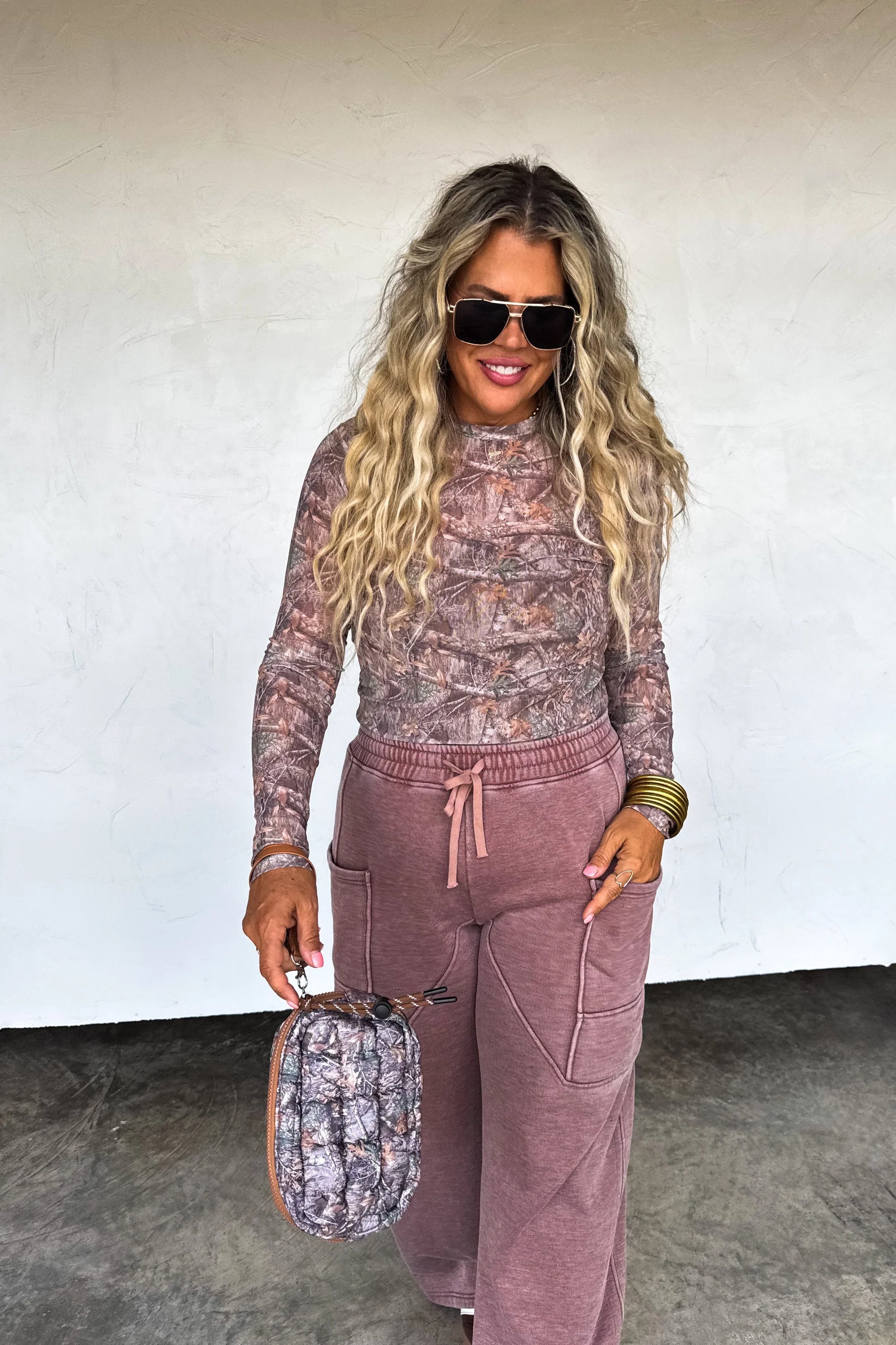 These wide leg pants feature a slight high-rise fit with an adjustable drawstring waistband for all-day comfort. Designed with bold front patch pockets and exposed seam detailing, they offer a casual yet elevated look. The washed terry cotton fabric adds a vintage vibe, while the relaxed wide leg cut keeps them effortlessly cool and easy to style.