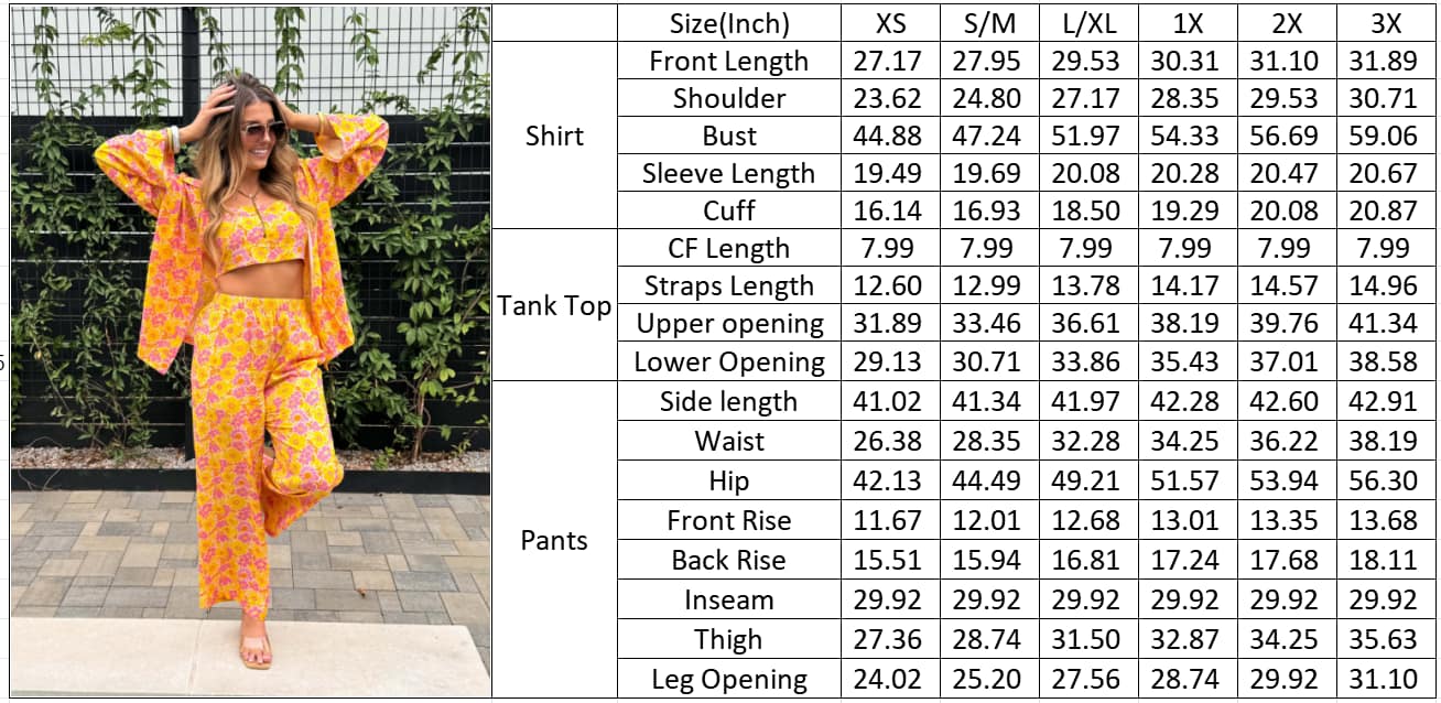 Make a bold statement with this vibrant 3-piece floral set! Featuring a flowy button-down top, a matching crop tank with smocked back and adjustable straps, and wide-leg pants with an elastic waistband. This set combines comfort with playful with a hint of retro-inspired style pool side style!