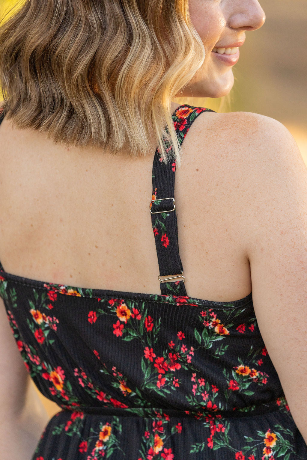 Michelle Mae Reagan Ribbed Midi Dress - Black Floral