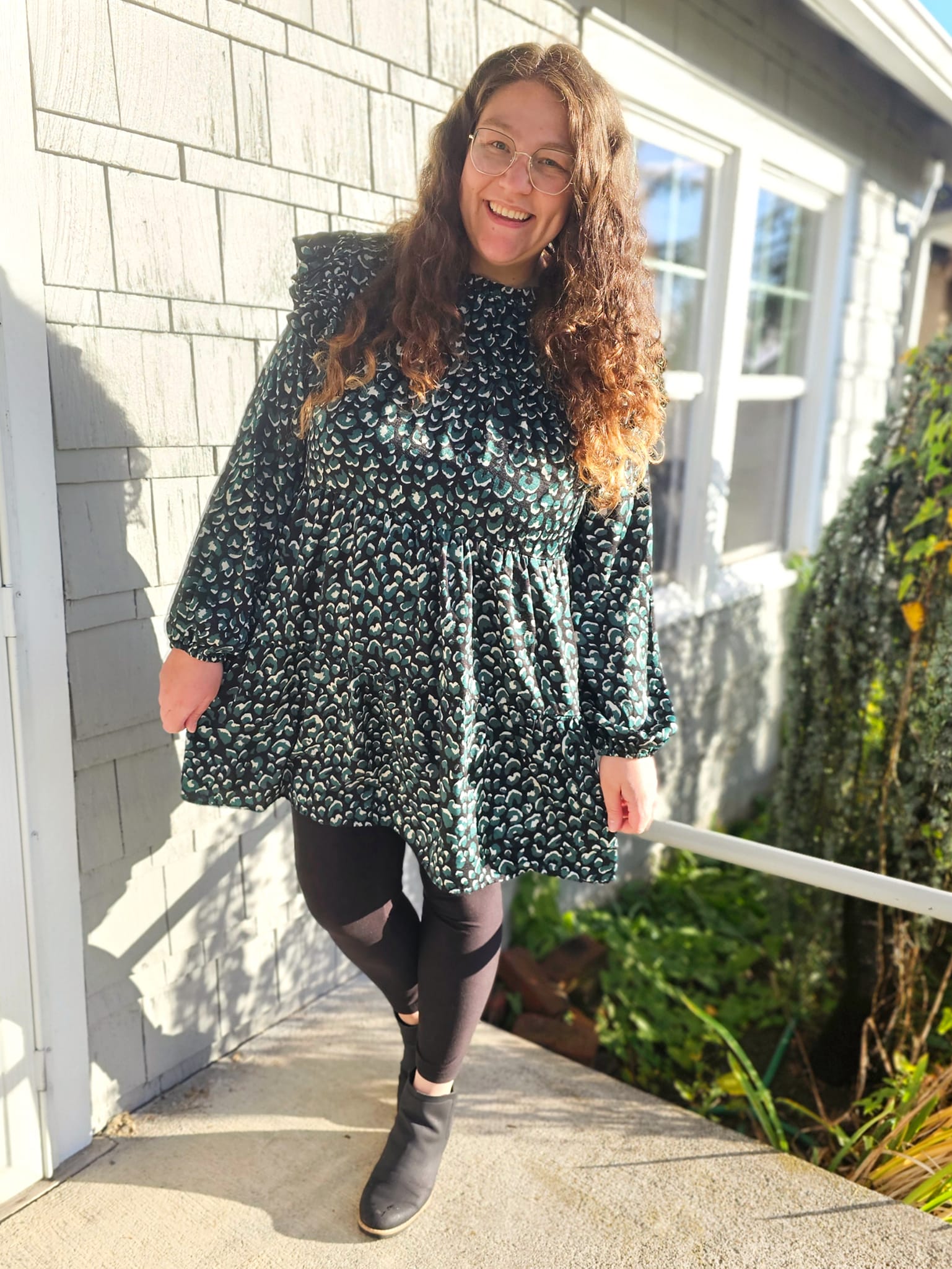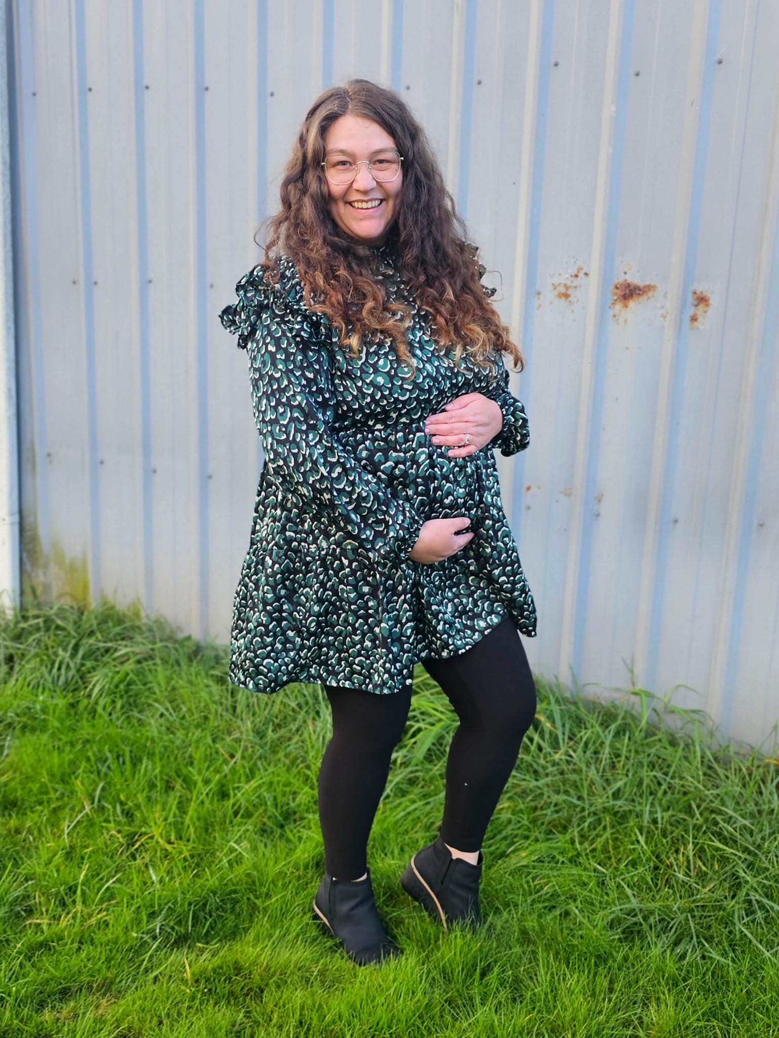 Tyleen is 5' 7 1/2", 235lbs, 42DDD, 21 weeks pregnant, typically a 1X/2X in tops and 16 in denim. Wearing the 2X. She says "I love this dress so much! One of my all time favorites. It's perfect for the holidays and with or without leggings/tights. 10/10 recommend!"