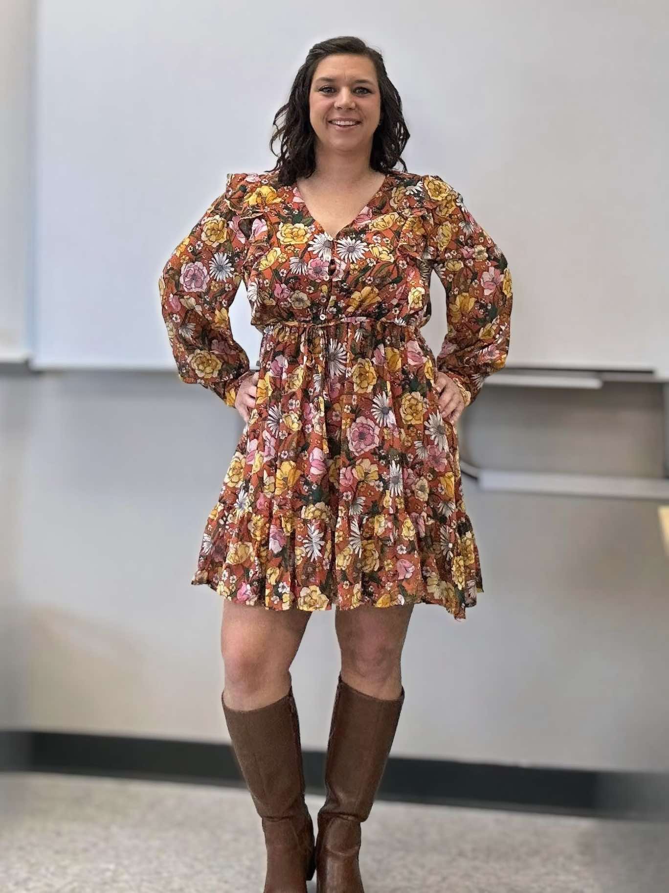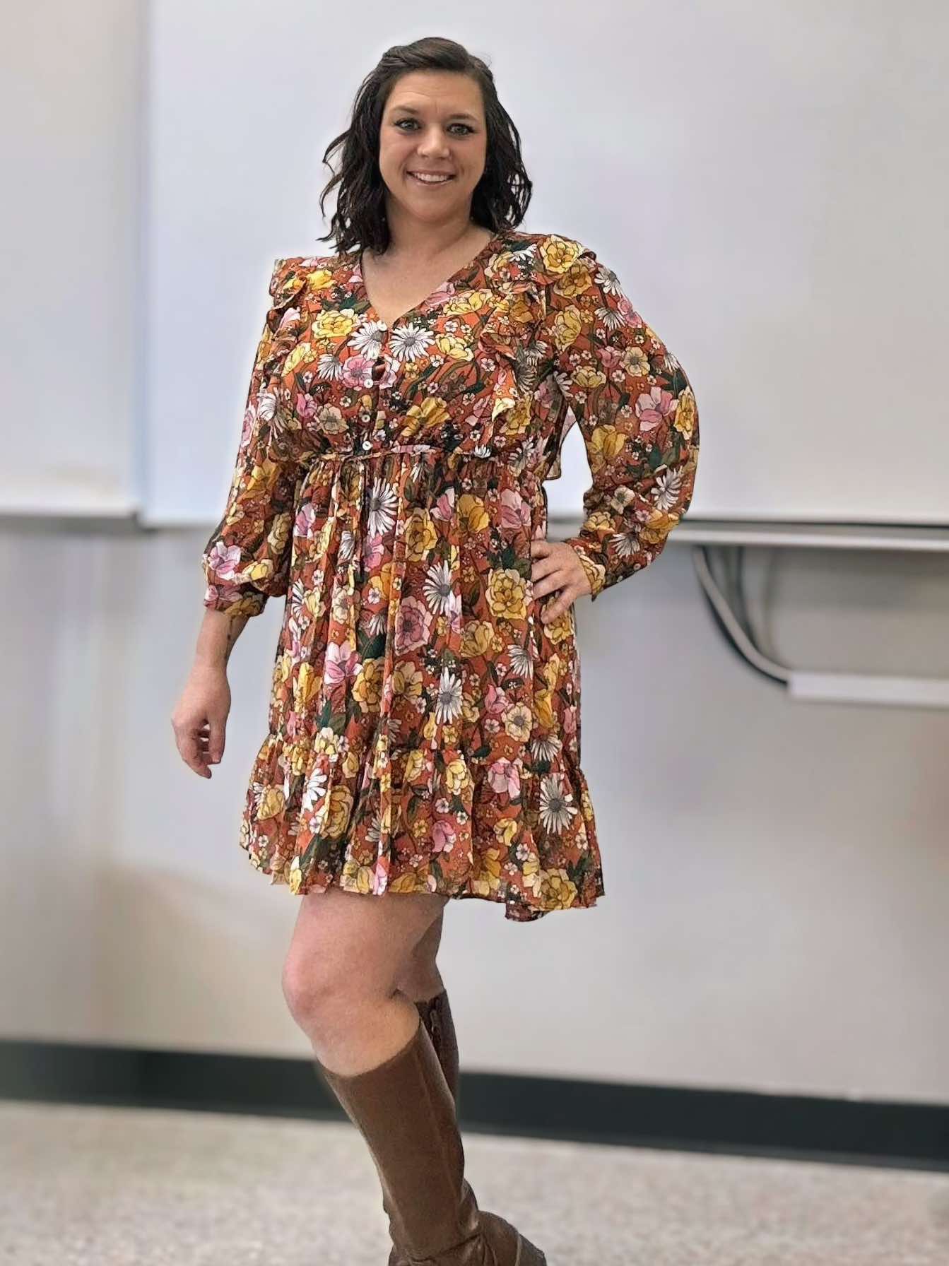 Introducing our So Long, Farewell dress! This playful chiffon dress features a V-neckline, functional front buttons, and banded sleeve cuffs. The elastic waistline and functional waist tie provide a comfortable fit, while the fully lined design and ruffled hemline add a touch of elegance. Say goodbye to boring dresses!