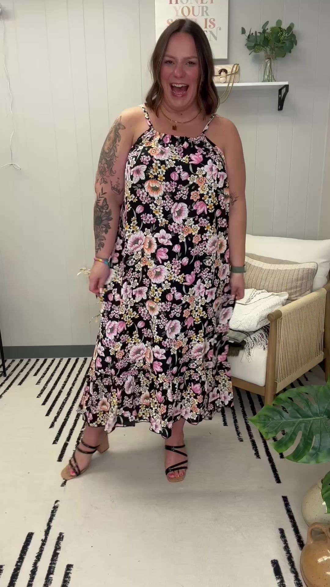 Bring on the sunshine with our Sunny Side of Life Halter Top Dress! This playful piece features a breezy woven fabric and a functional drawstring neckline, giving you a comfy, customizable fit. The halter silhouette and exaggerated ruffled hemline add a fun, flirty vibe, while the keyhole closure is the perfect little detail to top it all off. Whether you're heading to brunch or dancing under the stars, this dress is made for good times and sunshine!