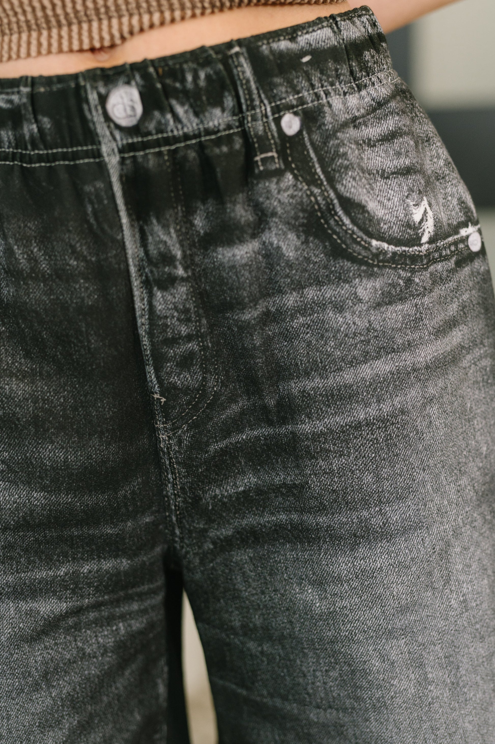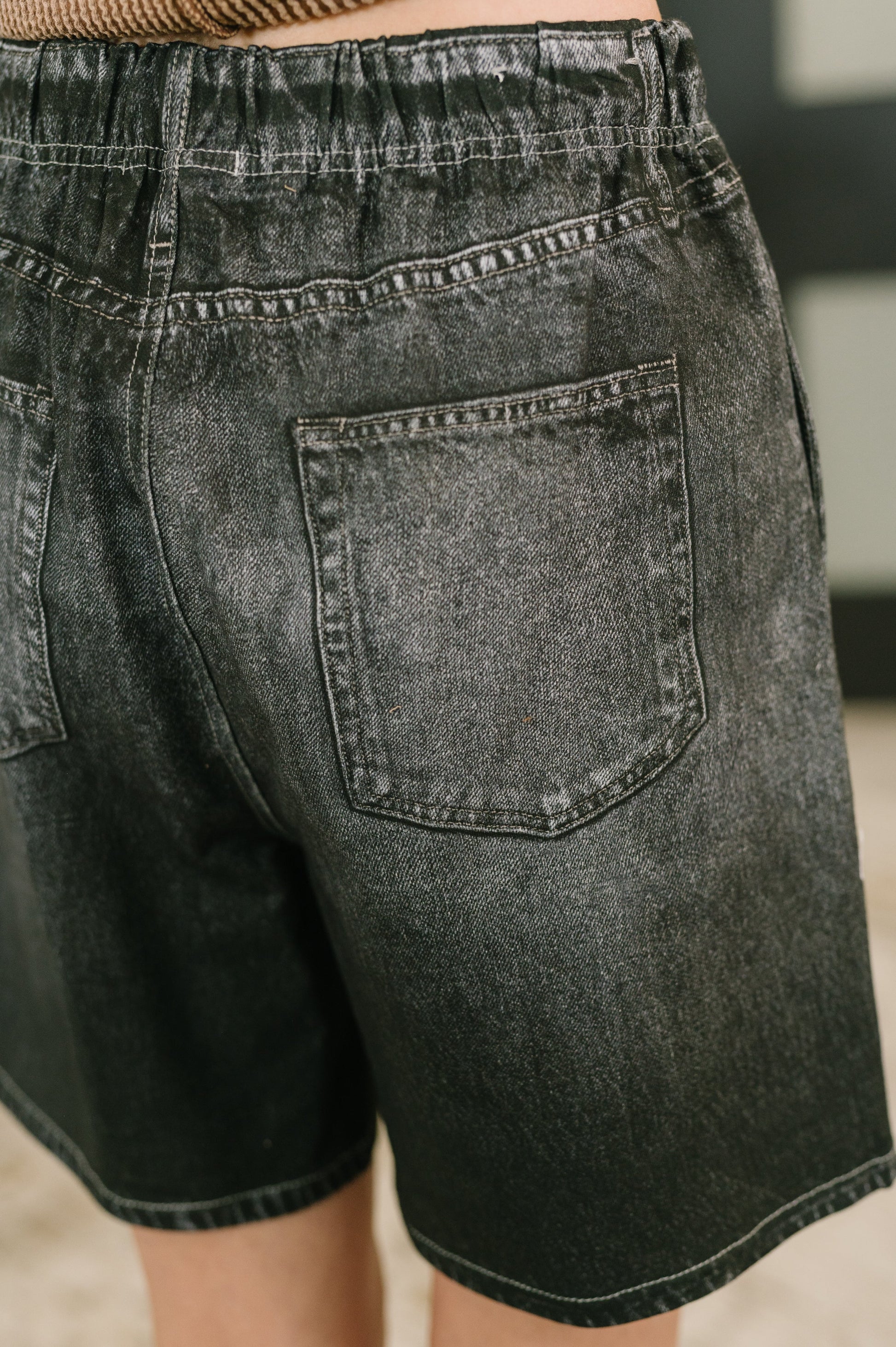 Zenim Printed High Waisted Shorts in Charcoal feature premium French terry construction with exceptional stretch for all-day comfort. The high-waist design flatters your silhouette while the cased elastic waistband ensures a secure, adjustable fit. Functional side pockets add practical style, making these shorts perfect for casual wear or relaxed weekends.